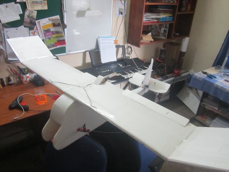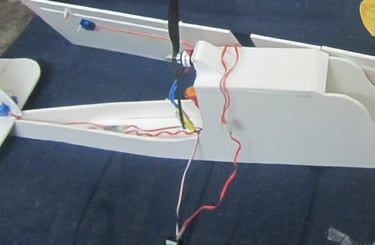 It has a 72’’ (6 feet) wingspan and is made out of EPP foam, aluminum rods, and fiberglass tape. The electronics used in the aircraft are a 1400kV BLDC motor, spinning a 10x4.5 propeller, run by a 30A brushless ESC with Simon-k firmware, four 9g servos, and a 6-channel R/C transmitter and receiver.