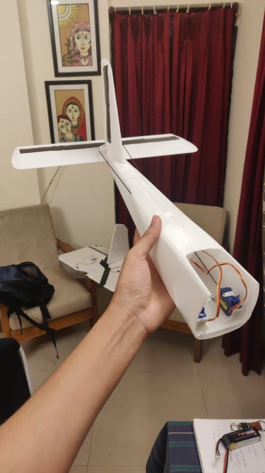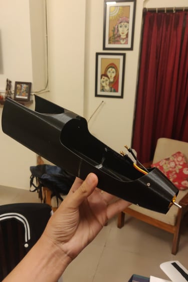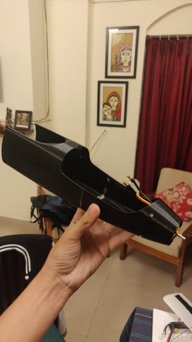 Having procured an FDM 3D printer during the COVID-19 lockdown, I wanted to experiment with a fully 3D-printed aircraft, with the fuselage, wings, and control surfaces, all 3D printed out of PLA filament. The 3D printing slicer software was tuned to ensure a high strength-to-weight ratio.