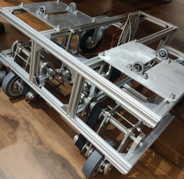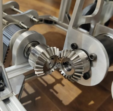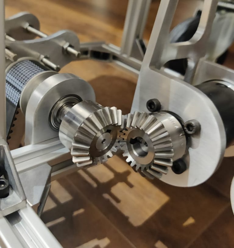 Following is the manufactured and assembled UGV, showcasing the belt drive, miter gear assembly ad pre-load assembly.